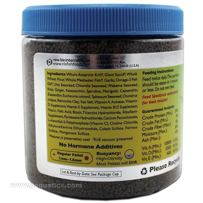 - Non-Medicated, Anti-Parasitic 1mm sinking pellets.