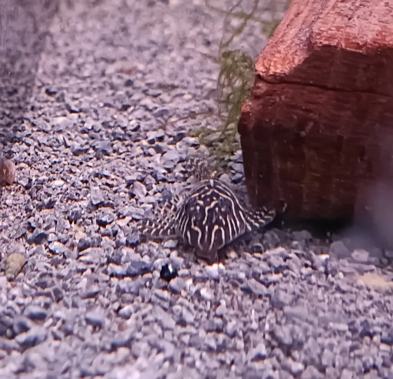 The Queen Arabesque Pleco is admired for its striking black-and-white striped patterns, giving it an elegant, “arabesque” appearance. It's a peaceful species but can be territorial with other plecos, especially in confined spaces. Because of its small size, it's a great choice for hobbyists with mid-sized aquariums looking for a unique and attractive species.