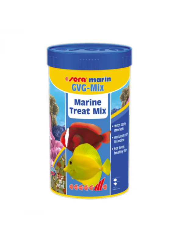 sera marin GVG-Mix is the staple food consisting of carefully manufactured flakes and dried whole food animals for all marine fish that prefer to eat at the surface.