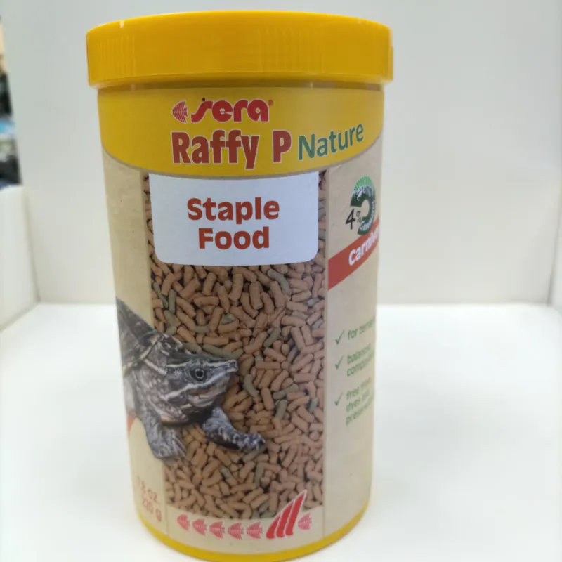 sera Raffy P Nature is the staple food consisting of floating, gently manufactured granules for carnivorous reptiles such as terrapins.