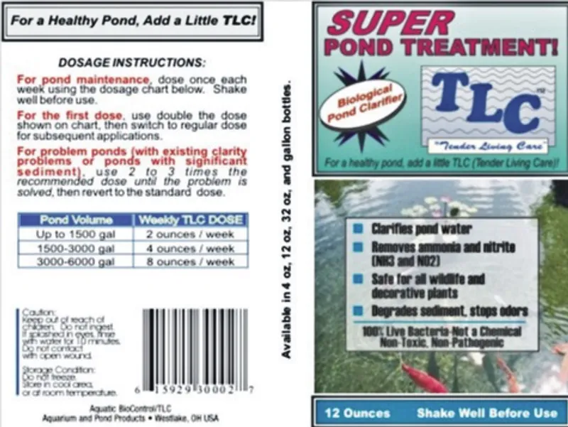TLC Super Pond Treatment is 100% live bacteria, not a chemical; non toxic and non pathogenic.
