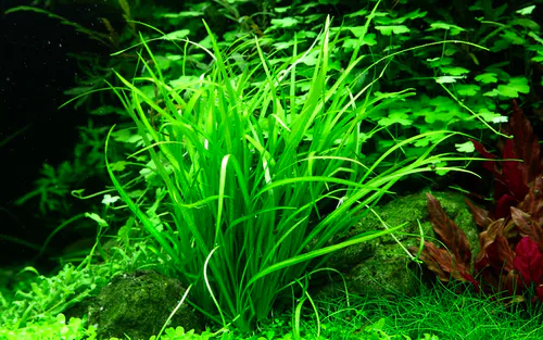 This small rosulate plant will easily make a 5-10 cm high carpet when the light is good and the bottom layer nutritious. Even at an intense light level this variety remains fresh green unlike the usual, more reddish, Helanthium tenellum.